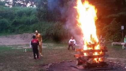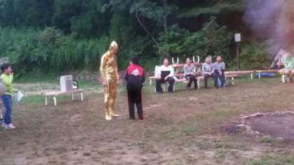 林間学習16—キャンプファイヤー— 公開日 2018/08/02 更新日 2018/08/02 お知らせ 火の神、火の子達から分火してもらい、ファイヤーに火が灯りました。最初に登場したのは、何とUFOに乗って来た宇宙人でした。UFO踊りを教えてもらいみんなで踊りました。 いいね(0)