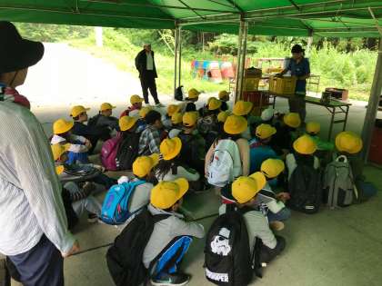 今から飯ごう炊さんです。メニューは、子どもたちの大好きなカレー作りです。宿舎の人の話を真剣に聞いています。