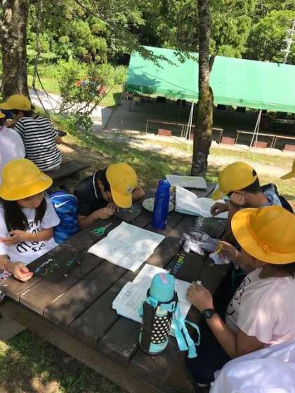 これから自分がデザインした文字やイラストを絵付けしていきます。専用のペイントを使って、それぞれ思い出に残る1枚に仕上げていきます。