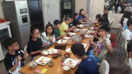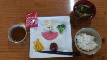 朝ごはんをしっかり食べて、本日のメニューに備えます。シャーベット作りは9時から行います。