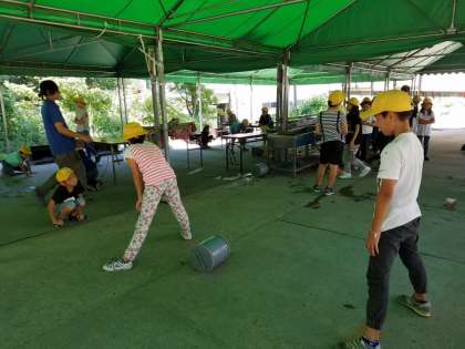 林間42 ーシャーベット作りー 公開日 2018/08/04 更新日 2018/08/04 お知らせ オレンジジュースを容器に入れて、氷を詰めて、転がしてシャーベットを作っています。 20分、みんなで協力して転がします! なかなかしんどーい!! いいね(0)
