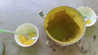 器の内側回りにシャーベットができています。スプーンですくって食べました。100パーセント果汁なので、少しだけ酸っぱさが残っています。