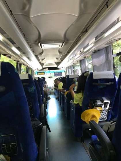 バスへの乗車が終わりました。今から学校に帰校します。