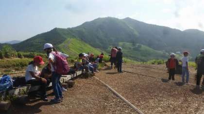 林間学習—エピローグ登山— 公開日 2018/08/05 更新日 2018/08/05 お知らせ 高丸山の山頂から鉢伏山を見上げた写真です。休憩をはさんで下山します。宿舎が眼下に小さく見えます。山頂は心地よい風が吹いていました。 いいね(0)