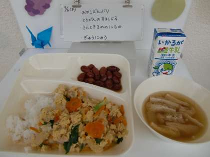 9月6日の給食 公開日 2018/09/06 更新日 2018/09/06 お知らせ 今日の献立は、【親子丼、とうがんのすまし汁、金時豆の煮もの、牛乳】でした。 親子丼は、卵の個別対応献立でした。だしの味がよく、ごはんのすすむ丼でした。 いいね(0)