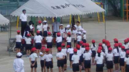 運動会全体練習 公開日 2018/09/18 更新日 2018/09/18 学校行事 今日は運動会の全体練習を行いました。入場行進や開・閉会式など初めて全体で練習を行いましたが、子どもたちは全体の流れや動きをしっかりとつかんだようです。 運動会まで2週間、子どもたちがそれぞれに目標やめあてを持って頑張ってほしいと思います。 いいね(0)