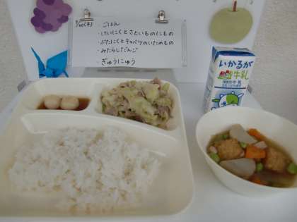 9月20日の給食 公開日 2018/09/21 更新日 2018/09/21 お知らせ 今日は月見の行事献立で、【ごはん、鶏肉とさといもの煮もの、豚肉とキャベツのいためもの、みたらしだんご、牛乳】でした。 旧暦の8月15日は、十五夜や中秋の名月といって、月が美しく見えるときです。いもやだんごをそなえたり、すすきを飾ったりしてお月見をします。 今年の十五夜は9月24日です。 いいね(0)