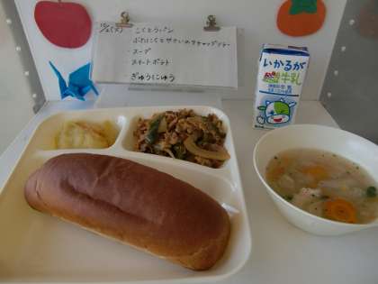 10月2日の給食 公開日 2018/10/03 更新日 2018/10/03 お知らせ 今日の献立は、【黒糖パン、豚肉と野菜のケチャップソテー、スープ、スイートポテト、牛乳】でした。 手作りのデザート、スイートポテトが出ました。さつまいもの自然な甘さで、児童たちにも好評でした。 運動会でしたが、残さずきれいに食べていました。 いいね(0)