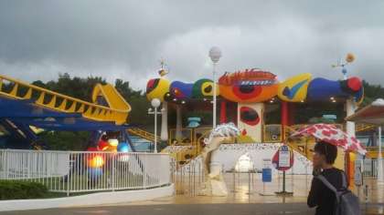 雨が降ってきたため、ピレネーをはじめ、いくつかのアトラクションが休止となりました。