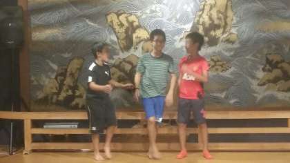 トップバッターは漫才、だんご三兄弟。インタビューねたで大爆笑でした。