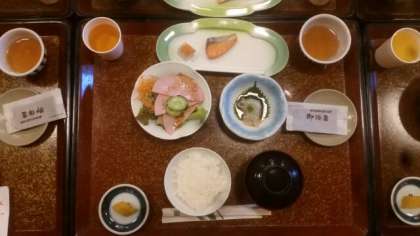 朝の会の後、7時から朝食をいただきました。食事係のあいさつのもと、みんなで「いただきます。」
