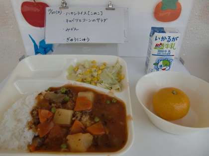 10月30日の給食 公開日 2018/10/31 更新日 2018/10/31 お知らせ 今日の献立は、【ハヤシライス[米粉]、キャベツとコーンのサラダ、みかん、牛乳】でした。 いつものハヤシライスは、小麦粉を使ったブラウンルウで作っていますが、今日のハヤシライスは、米粉(上新粉)を使用して作っていました。そのため、小麦アレルギーの児童も食べられるものでした。 全校で見て、ごはんの残量がほとんどありませんでした! いいね(0)