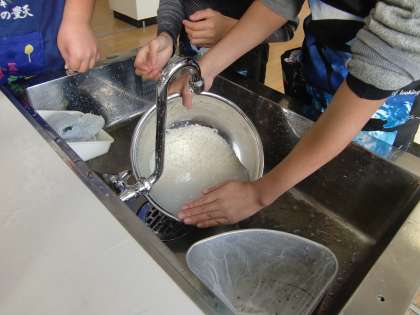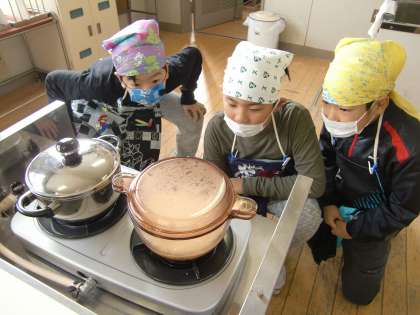 ごはんはお鍋で炊きました。火加減が難しく、少しこげができてしまいましたが、どの班もおいしく炊けたようでした。