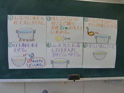 白玉は、白玉粉に少しずつ水を足しながら、耳たぶの硬さにこねていきます。抹茶と豆腐を足した抹茶白玉も作りました。