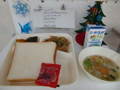 12月19日の給食 公開日 2018/12/19 更新日 2018/12/19 お知らせ 今日の献立は、【食パン、豚肉のケチャップソテー、はくさいのスープ、焼きかぼちゃ、いちごジャム、牛乳】でした。 冬至は、1年のうちでもっとも昼間が短く、もっとも夜が長い日です。冬至には、保存がきき、風邪の予防に役立つとして、昔からビタミンが多いかぼちゃを食べる風習があります。今日の給食には、冬至にちなんで、焼きかぼちゃが登場しました。 今年の冬至は、12月22日です。 いいね(0)