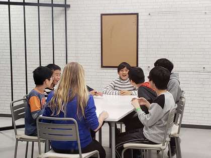 ニューヨークで記念撮影の後、ポリスステーション体験です。インストラクターととても仲良くコミュニケーションをとっているのが、外まで聞こえてきました。