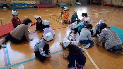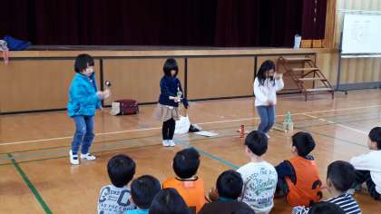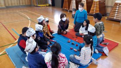 地域連携学習として、地域の方々との昔あそび交流会を行いました。