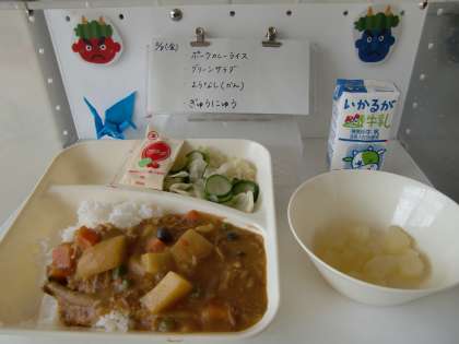 2月8日の給食 公開日 2019/02/08 更新日 2019/02/08 お知らせ 今日の献立は、【ポークカレーライス、グリーンサラダ、洋なし(缶)、牛乳】でした。 今日のカレーには、しめじが入っていました。カレーに入ってもしめじの味はしっかりしていたので、きのこが苦手な児童は苦戦していました。 いいね(0)