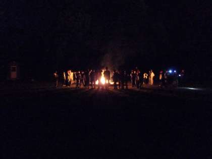 5年生 林間学習 公開日 2025/07/26 更新日 2025/07/26 学校行事 キャンプファイヤーその2! 火はあっという間に空高く燃え上がり、大きな火柱となりました。 火を囲んで、チャンツ(遊び)をしたり、歌ったり、出し物をしたり…。 真っ暗になるまで、楽しみました。 空には北斗七星が!よく見つけたね! いいね(0)