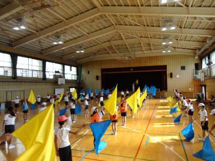 5・6年生は、今年もフラッグ演技に挑戦します。