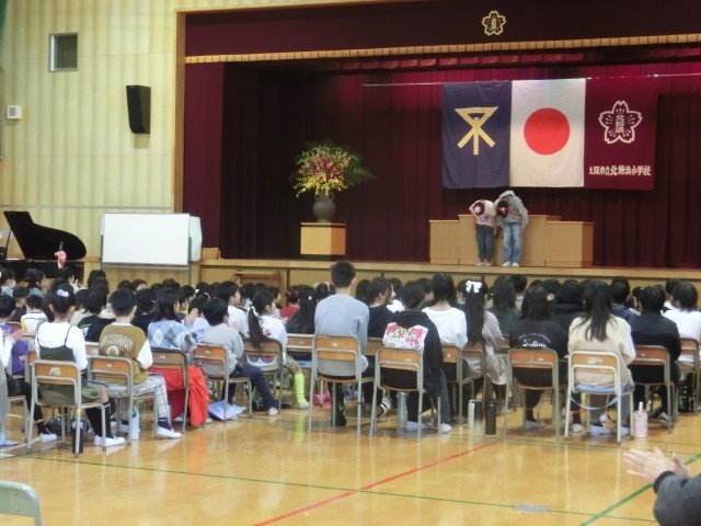 40人を超えるご来賓のみなさんにお越しいただき、全校児童が参加し、おたんじょうびパーティーを行いました。