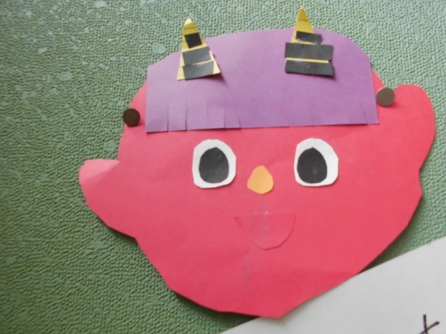 1年生が、いろいろな鬼の顔を図画工作科の学習時間に制作しました。