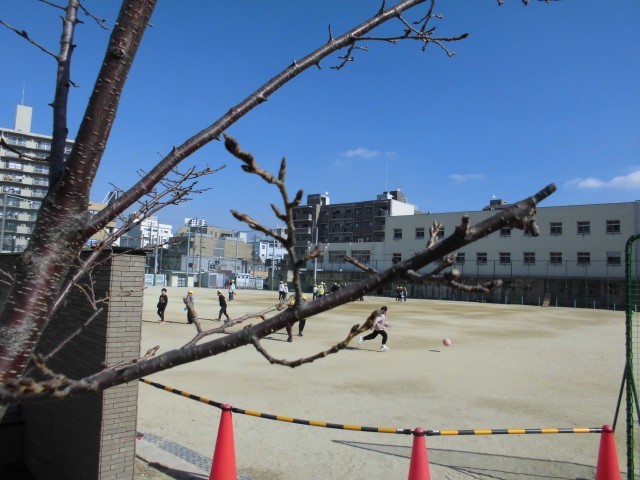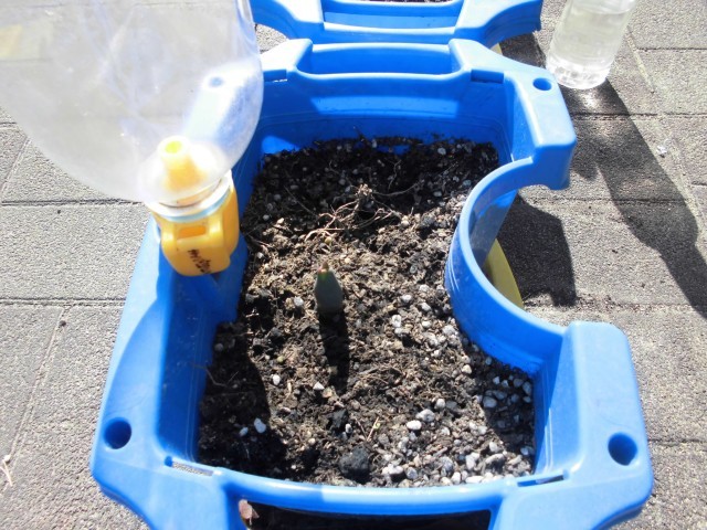 正門から玄関にかけての通路で、1年生が生活科の学習活動で育てている