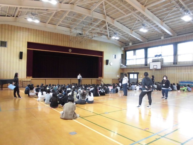 毎週、月曜日の朝は、全校児童が体育館に集合して、