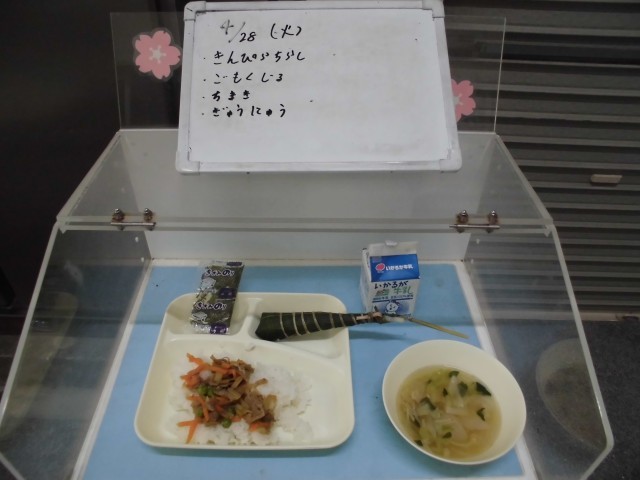 今日の学校給食の献立は…【こどもの日 行事献立】 公開日 2026/04/28 更新日 2026/04/28 お知らせ 今日4月28日(火)の学校給食の献立は、【こどもの日 行事献立】でした。「きんぴらちらし」・「五目汁」・「ちまき」・「牛乳」でした。昔、学校給食で食べた「ちまき」は、もっと大きかったような…(あくまでも、私、個人の感想です。) いいね(1)