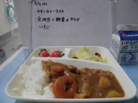 昨日3月4日(水)の学校給食の献立は、【牛乳】【チキンカレーライス】【金時豆と野...