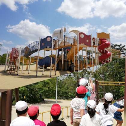 5月17日(金) 良い天気に恵まれた服部緑地公園、大きな遊具で仲良く遊んでいます!