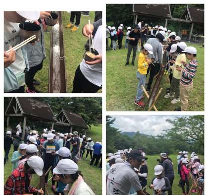 上流が有利だとの意見から、順番を決めて上流を入れ替わります。おにぎりも食べ、自然の中で満腹です。