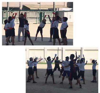 9月29日 日曜日に行われます運動会に向けて、4.5.6年生の有志が応援団の練習に励んでいます。
