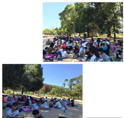 各グループにぎやかに美味しくお弁当をいただいています。