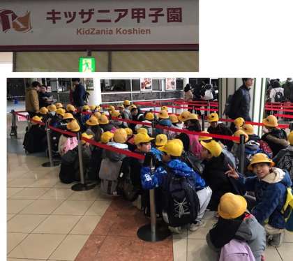 全員ぶにキッザニア甲子園に到着しました。 これから説明を受けて入場します。