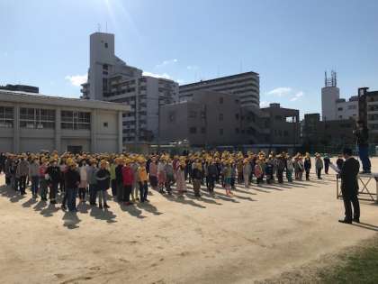 本日は修了式をグラウンドで行いました。間隔をいつもより少し広くあける配慮での実施としました。