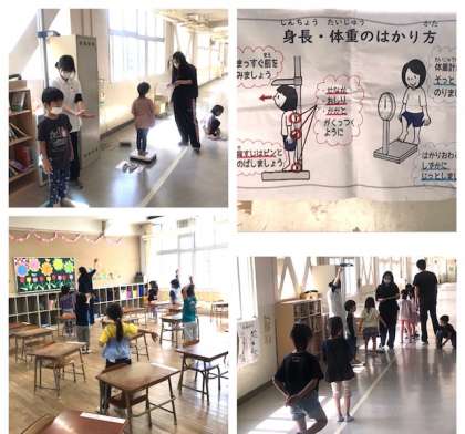 今日は身長と体重を計りました。待っている間も間隔をきちんと空けて静かに待つ事ができました。素晴らしいことです。