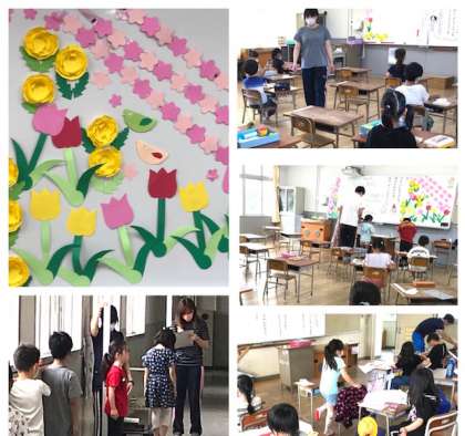 1年生は来月の玄関掲示用の紫陽花や雨を作ってくれました。