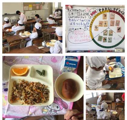 今日のメインは焼きそばでした。美味しくて残す人は一人もいませんでした。デザートのオレンジもとても甘く、みんなの笑顔がはじけていました。