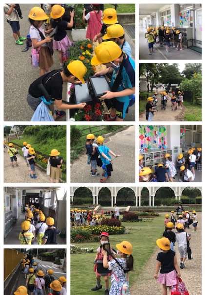 道すがら出会う方から、タブレット型パソコンを1年生が持ち歩いている様子を見て、ほとんどの方が驚かれていました。「時代が変わったんやなぁ」「俺よりこの子らの方が進んでいる」などなど。