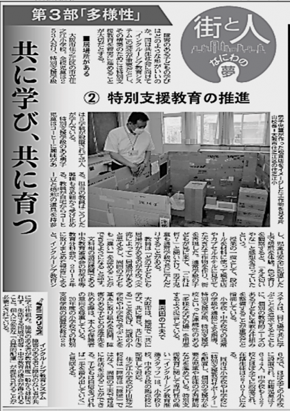 本校の特別支援教育について(大阪日日新聞掲載内容)