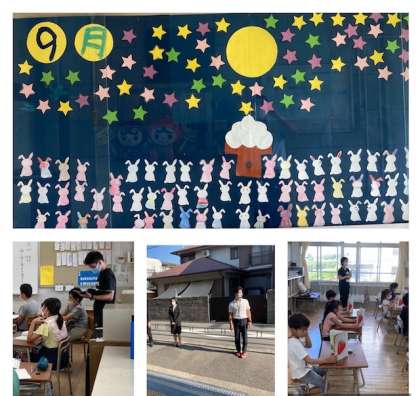玄関掲示は3年生が作成してくれた、お月見バージョンに変わりました。細かい作業も丁寧にできています。来校された際は是非ご覧ください。