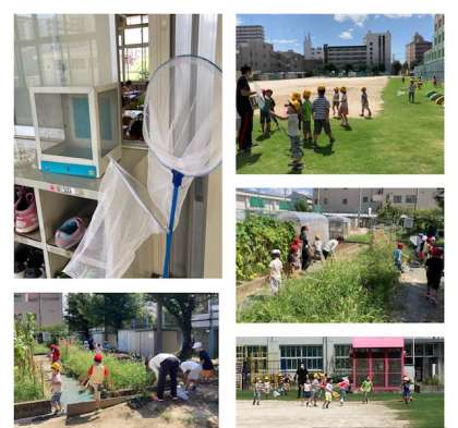 虫の苦手な児童もいますが、虫に触ることはできなくても、みんなと一緒に走り回っている様子が、なんとも微笑ましいですね。
