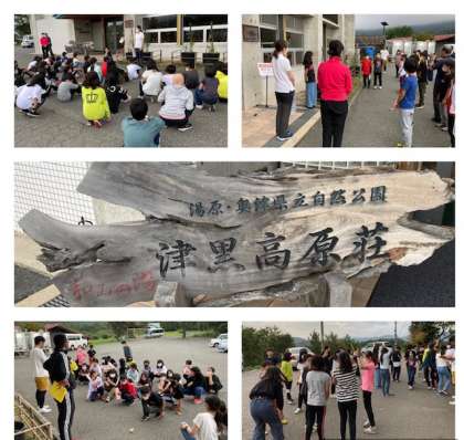 津黒高原荘に到着後、避難訓練と入所式を行いました。