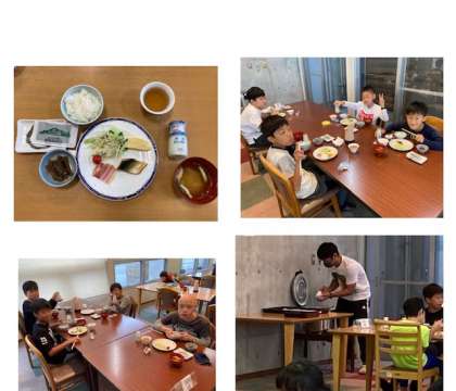 林間学習 2 公開日 2020/09/24 更新日 2020/09/24 校長室より 9月24日 木曜日 朝食の時間が始まりました。 今日の献立は、サバの塩焼き、ベーコン、卵焼き、ゴボウの煮付け、サラダ、飲むユーグルト、海苔、味噌汁、ご飯です。 蒜山高原で育った牛乳で作られた飲むヨーグルトが大人気です。 朝から担任の先生の食欲は相変わらずです。頼もしいかぎりです! いいね(0)