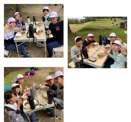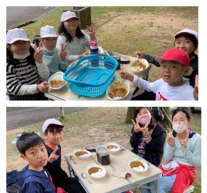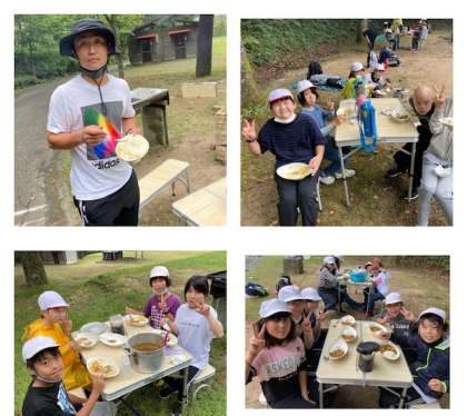 ご飯も上手に炊けて、宿舎で用意して頂いたカレーをかけて、みんなで “いただきます!"