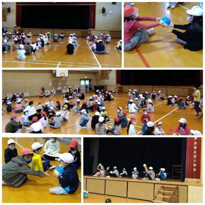密を回避するため、今週はたてわり班の奇数班のみ講堂に集まり、ゲームを楽しみました。