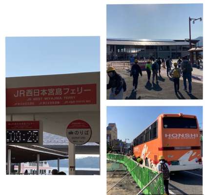 トイレ休憩後、フェリーに乗って宮島に向かいます。
