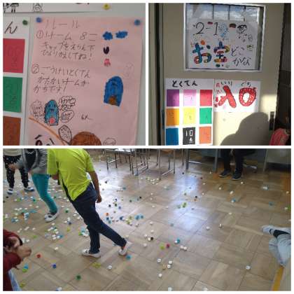 ペットボトルを裏返して、色で得点が決まるようです。ハイスコア取れるかどうかは運次第!?