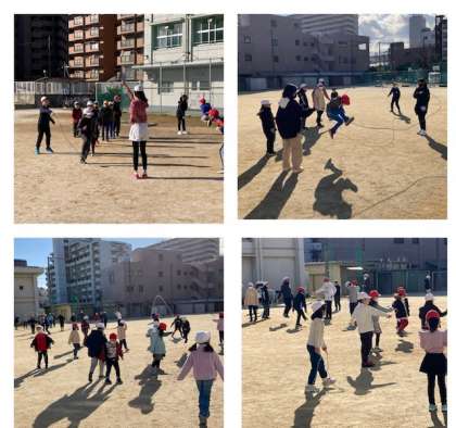 例年は「住之江ランランタイム」と銘打って休み時間にランニングを行っていましたが、今年はコロナ対策として、先生方のアイデアで、一人ひとりのスペースを確保できるなわとびと考えてしくれました。